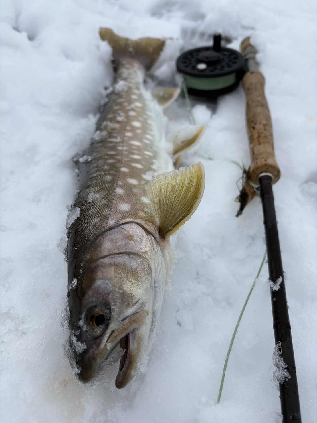 格好いいお腹がパンパンのアメマスが釣れました。鮭稚魚をたらふく食べているんでしょう。